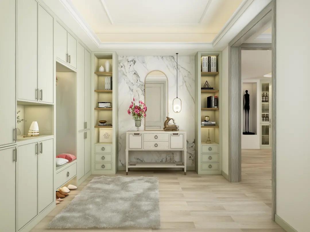 玄关色调是时尚的仿古白搭配浅灰,不过多矫饰,